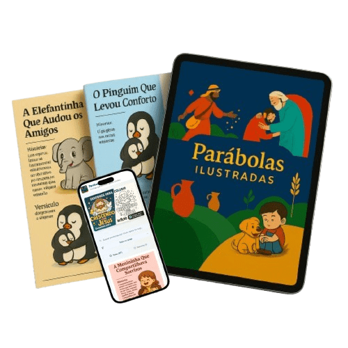 Hoje, ajudo pais e educadores a ensinarem as verdades do Evangelho com histórias simples, ilustradas e com lições poderosas — tudo de forma prática, divertida e que realmente toca o coração dos pequenos.